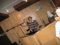Tomorrow night, we go back to the recording studio to work on vocals for our songs. As promised, here is a pictures. It’s hard to take pictures of yourself while recording, so there is just one of me. That is Erin C. on the right. She plays bass with our worship team.